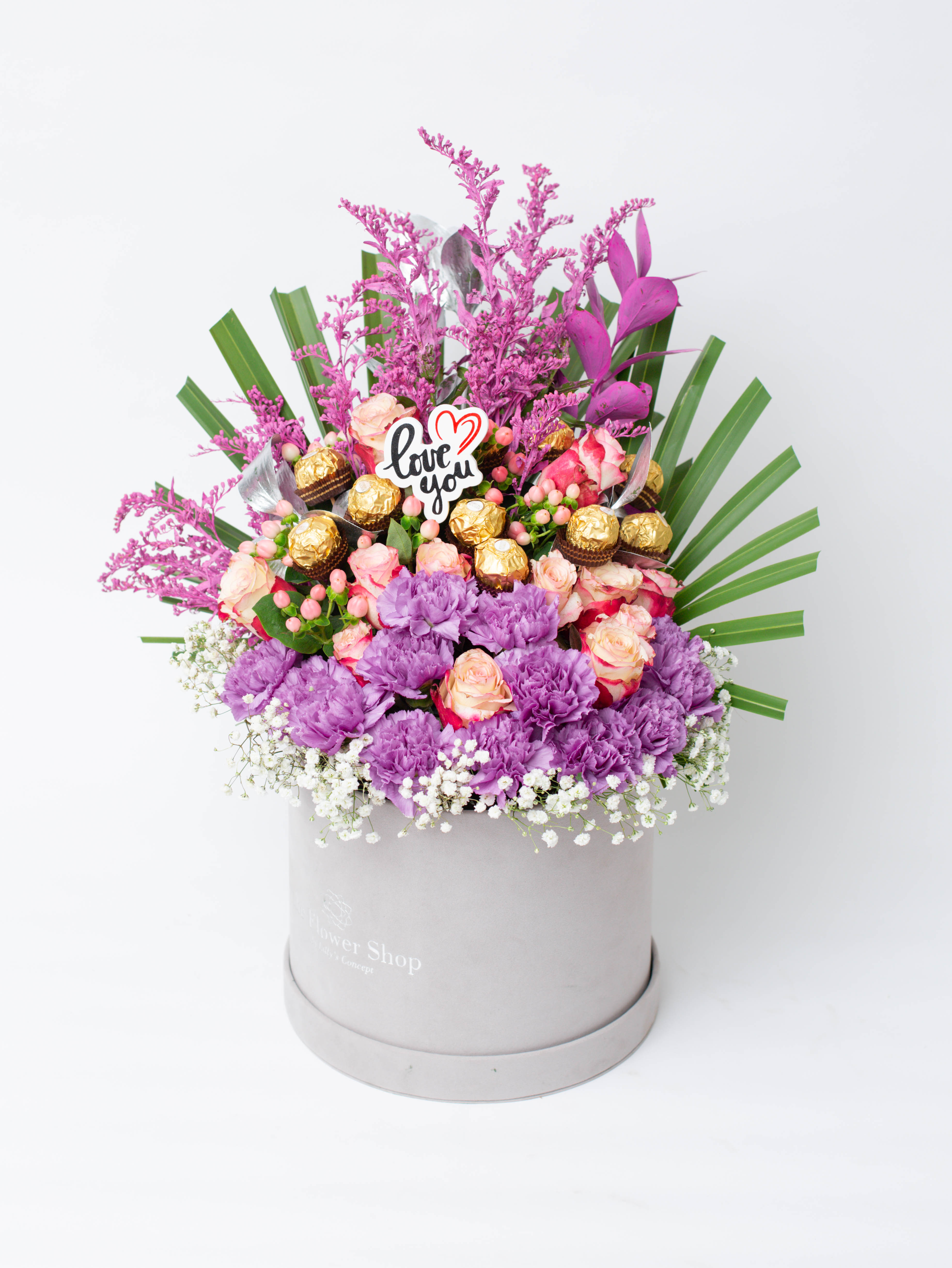 Purple Bliss with Chocolate in Round Luxury Velvet Box