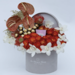 Orchids Roses & Anthurium in Round Luxury Velvet Box